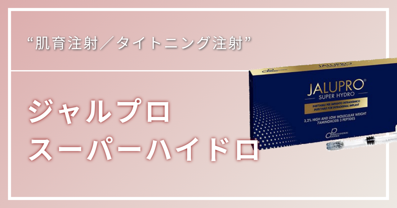 「ジャルプロ・スーパーハイドロ(Jalupro Superhydro)」は、イタリア(あるいはスイス系開発)由来の 非架橋ヒアルロン酸低分子+高分子 の2種類ブレンド+アミノ酸+ペプチド を組み合わせた “肌育注射/タイトニング注射” として効果的な製剤です。